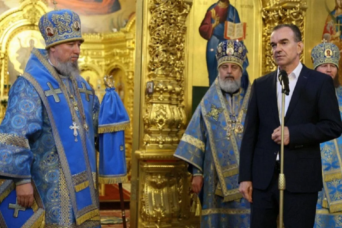 Фото: пресс-служба администрации Краснодарского края Глава региона принял участие в утренней литургии, которую митрополит Василий провел в краснодарском Свято-Екатерининском кафедральном соборе.
