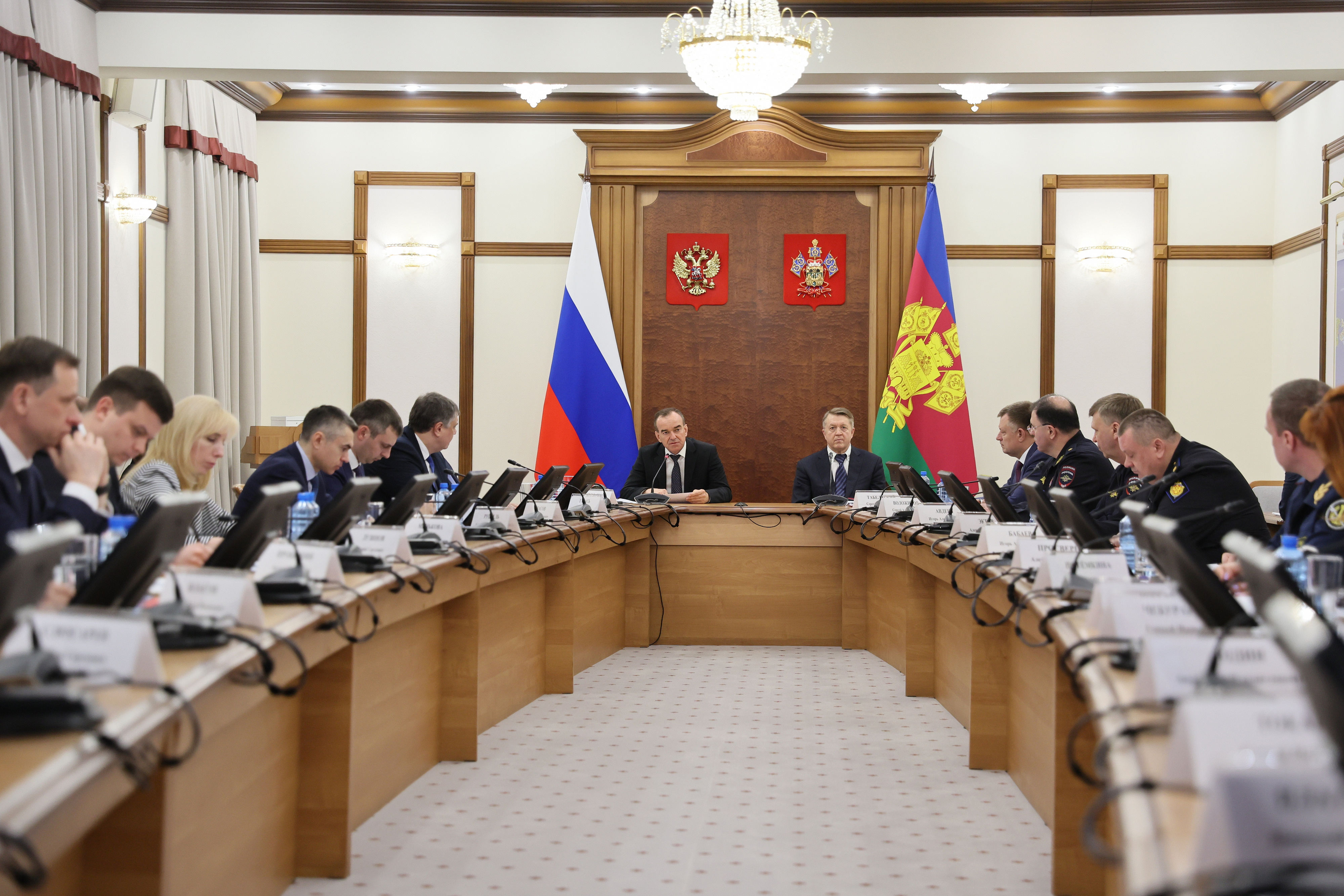 Фото: пресс-служба администрации Краснодарского края Совместное координационное совещание по обеспечению правопорядка и антитеррористической комиссии в регионе провели губернатор Кубани и начальник Управления ФСБ России
