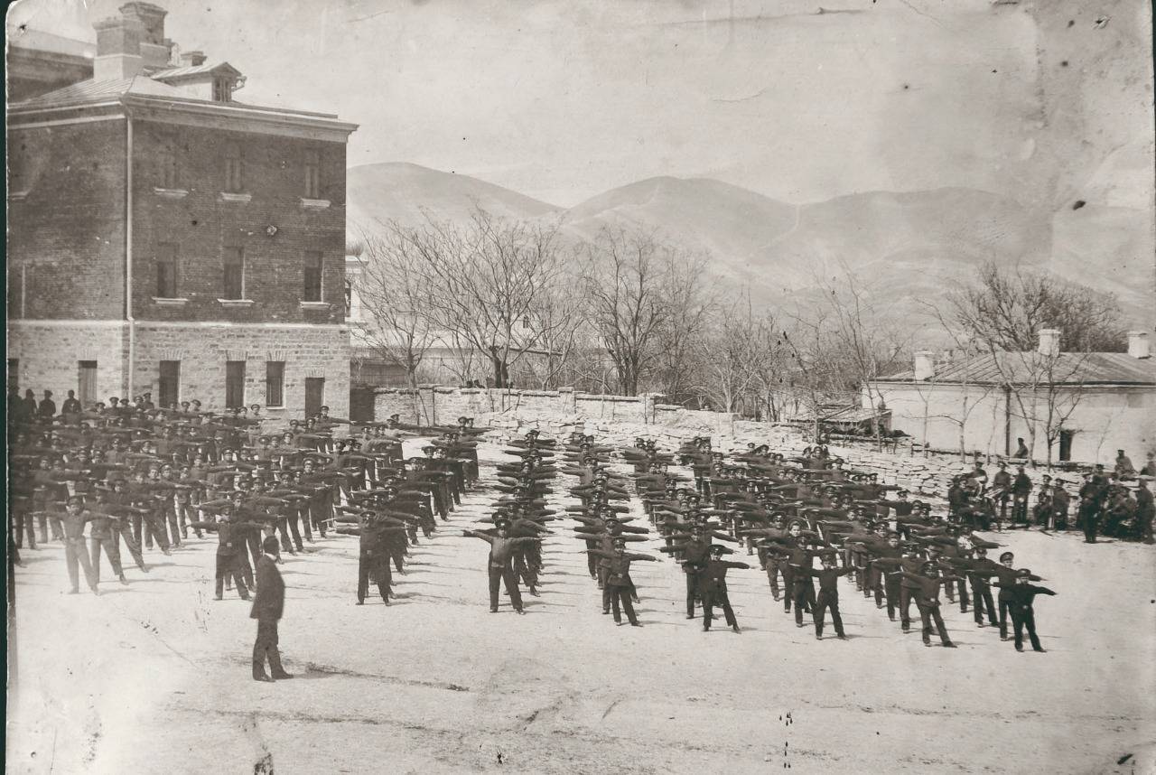 В фондах Новороссийского исторического музея-заповедника хранятся фотографии начала XX столетия, на которых запечатлён сокольский спортивный праздник учащихся мужской гимназии.