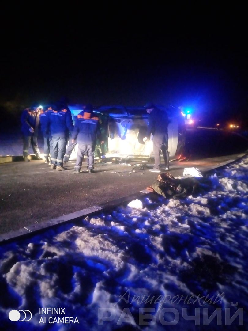 Авария этим вечером на выезде из Апшеронска у развилки на Майкоп