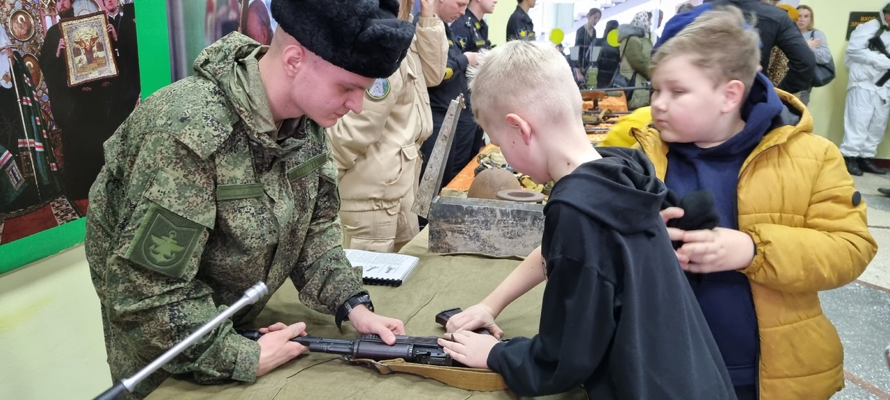 В эти минуты в малом фойе ГДК вы можете увидеть тематическую выставку воинский частей Ейского местного гарнизона, патриотических клубов по месту жительства комплексного центра молодежи города. В большом фойе - выставку Ейского историко-краеведческого музея им. В.В. Самсонова.