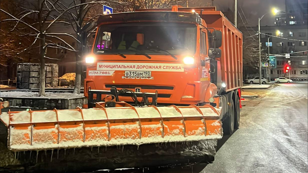 Для устранения скользкости на улично-дорожной сети краевой столицы всю ночь дежурили городские службы. Об их работе рассказал глава Краснодара Евгений Наумов в своём телеграм-канале.