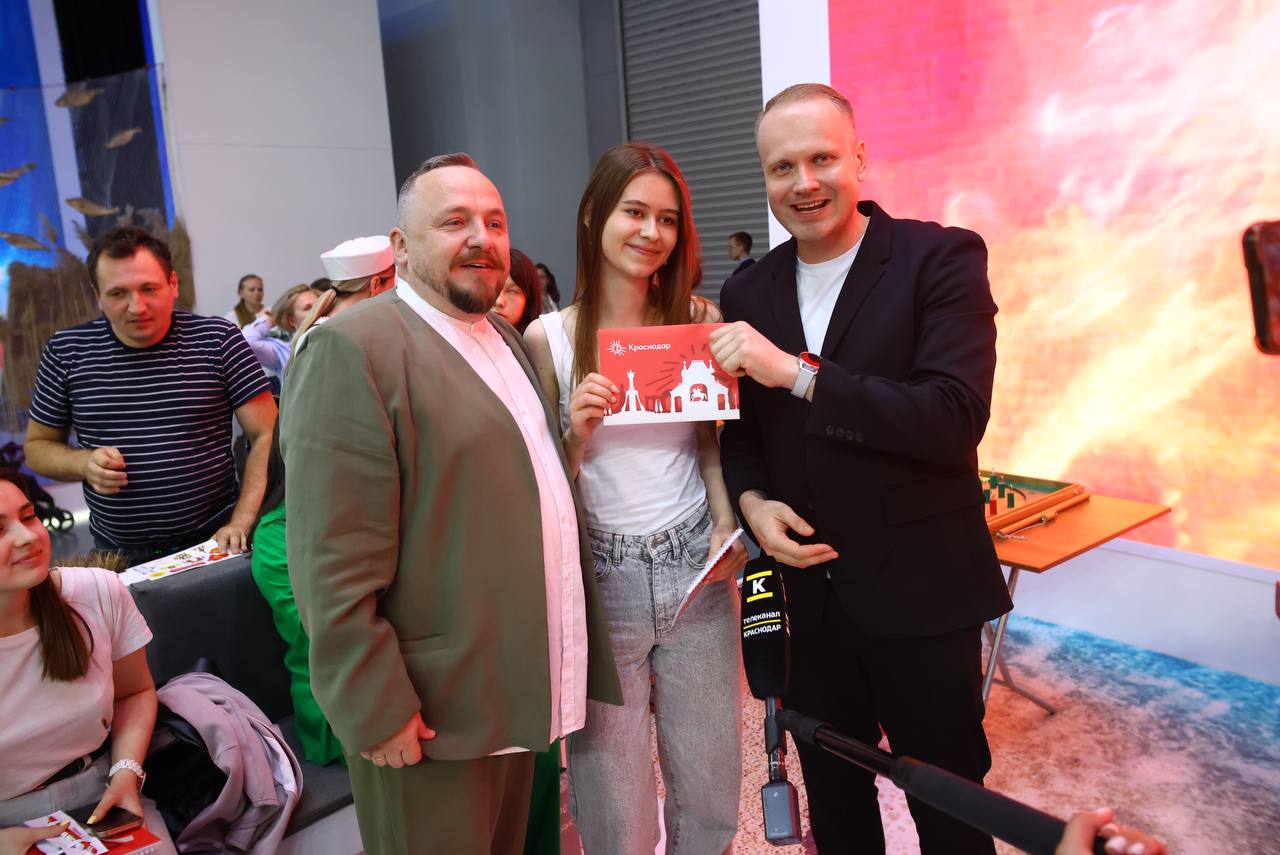 Обладателем путевки стала Анастасия Власова из Коломны. Именно у неё наибольшее количество правильных ответов на вопросы викторины про историю и архитектуру Краснодара, которую провели на выставке-форуме «Россия» сегодня.