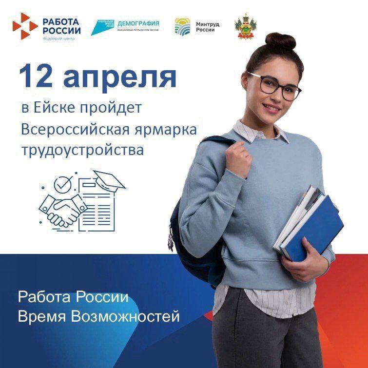 Уважаемые жители города Ейска! Приглашаем вас принять участие во Всероссийской ярмарке трудоустройства «Работа России.