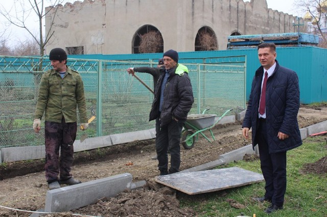 В настоящее время установлены водоотводные трубы, ведется монтаж бордюров.