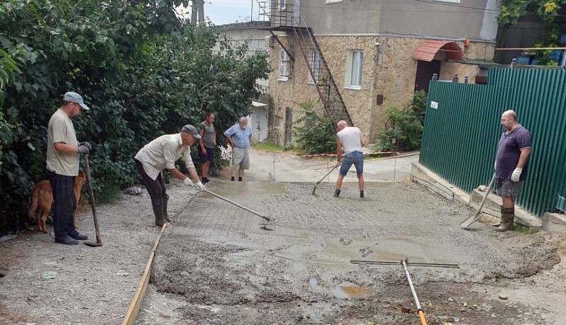 Жители переулка бетонируют проезжую часть в рамках программы «Инициативного бюджетирования».