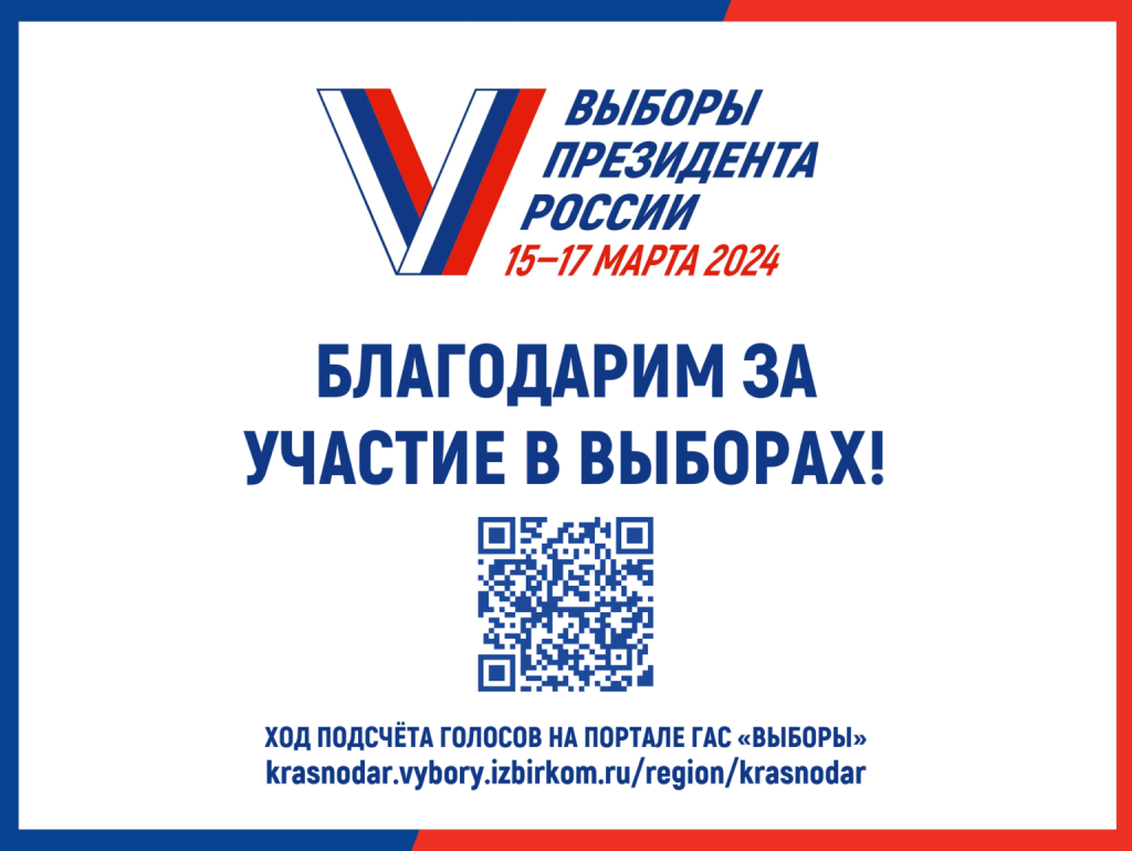 Избирательная комиссия Краснодарского края благодарит избирателей, которые смогли принять участие в голосовании на текущих выборах!