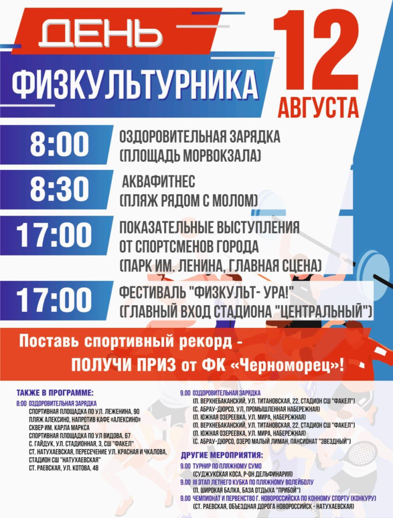 Новороссийцы, отпразднуем День физкультурника вместе!