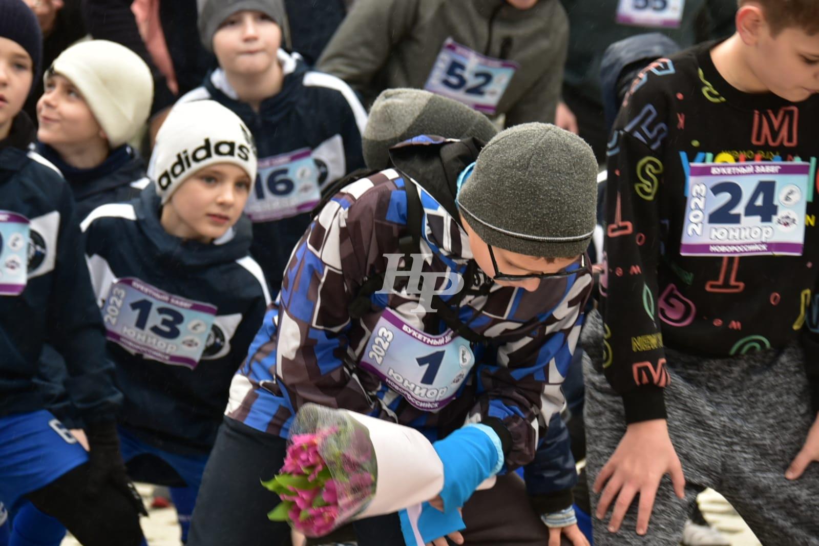 В «детском» забеге первым финишировал брат Даниила — Виктор, вторым вручил свой букет маме Илья Александров, третьим – Платон Березов .