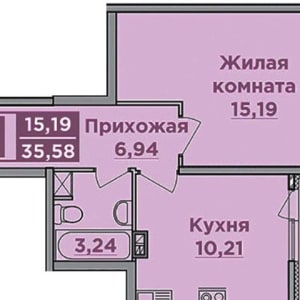 - Общая площадь: 35.6 м²
