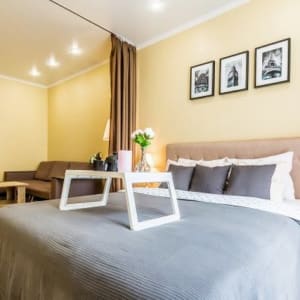 В квартире есть все для комфортного проживания: двуспальная кровать, двуспальный диван, телевизор, гардеробная, кухня со всей бытовой техникой, кухонная утварь, посуда на 4 персон, стол обеденный, стулья, стиральная машина, утюг, фен, беспроводной Wi-Fi. Гостям предоставляется постельное белье и полотенца.