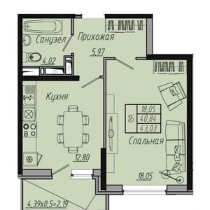 - Общая площадь: 43 м²