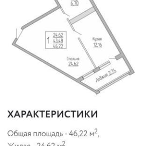 - Общая площадь: 46 м²