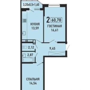 - Общая площадь: 61 м²