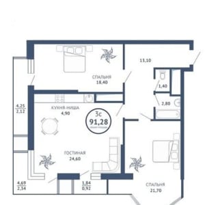 - Общая площадь: 92 м²
