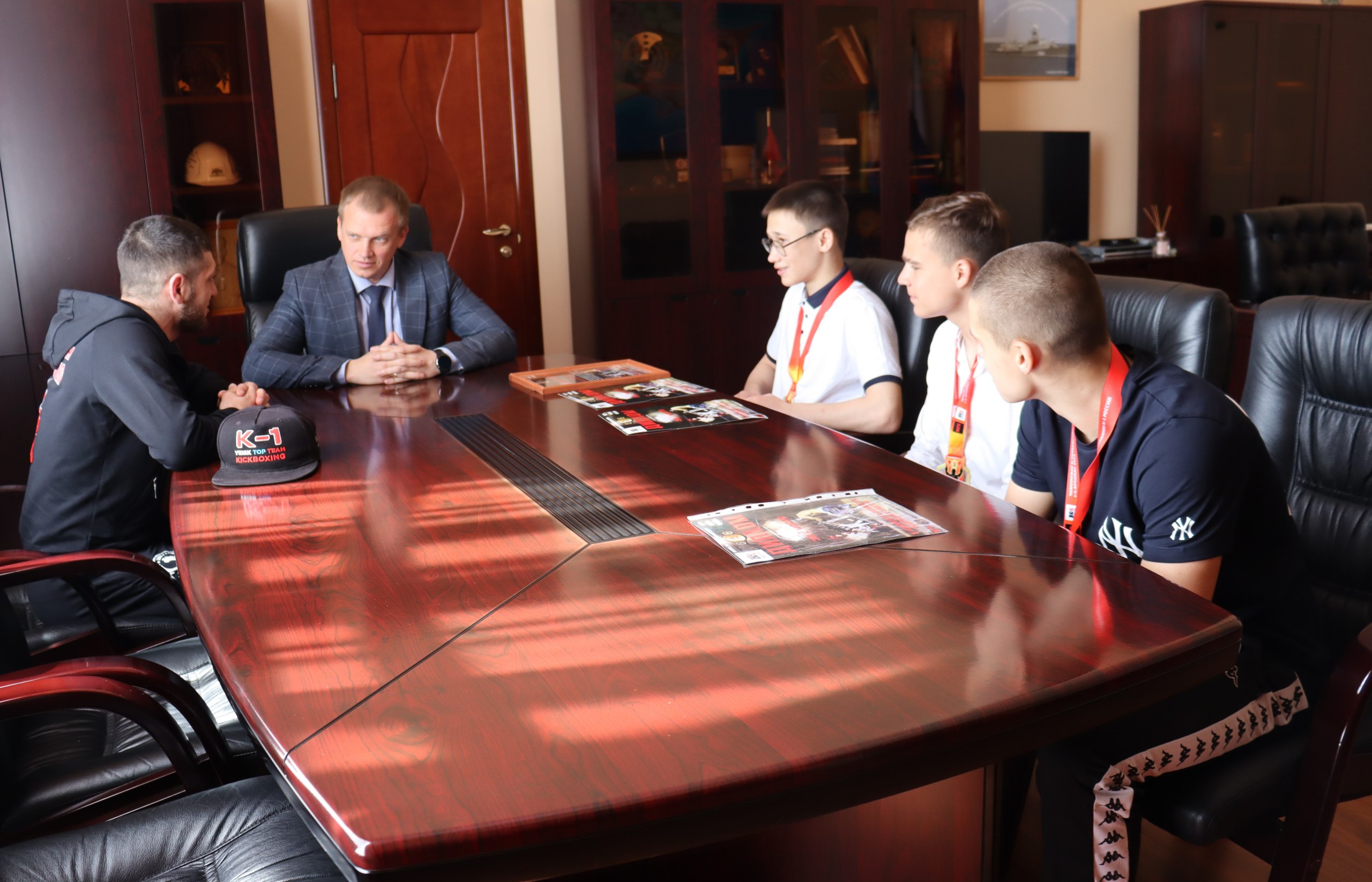 Троих из призеров вместе с их тренером, чемпионом мира по кикбоксингу Анри Ивановым, сегодня поздравил с заслуженными наградами глава муниципалитета. Он пожелал ребятам успехов в учебе, упорства, целеустремленности и обязательно идти дальше дорогой спорта.