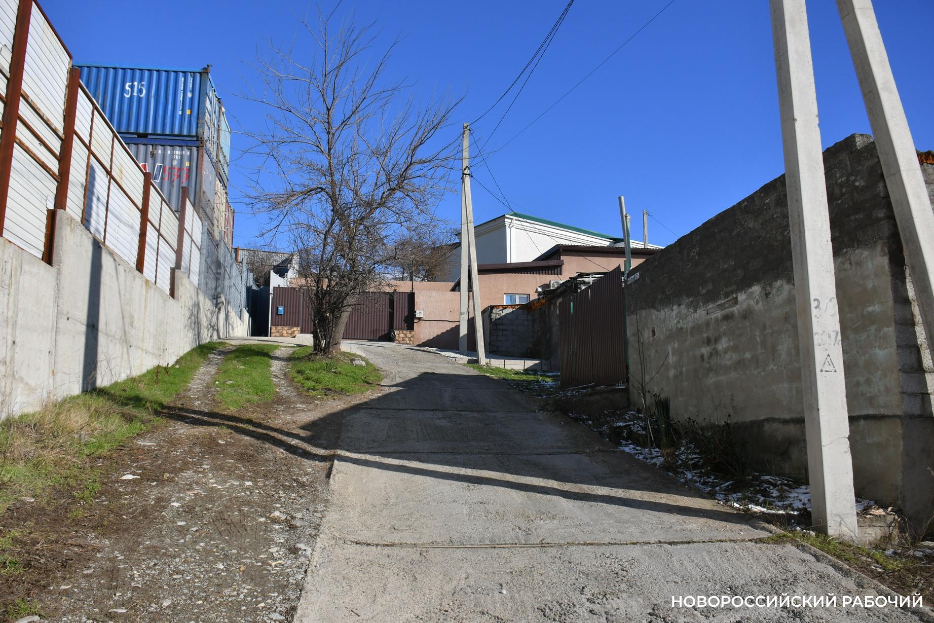 Улице срочно нужна новая бетонка. А тут можно ноги сломать и пузо автомобиля порвать. Фото Анатолия Позднякова.Мало кто знает, что изначально, когда посёлок строился в 1897 году, он назывался «Уютная колония». В 1911 году на выставке «Русская Ривьера», в Санкт-Петербурге, в одном из распространявшихся там рекламных журналов было написано, что Общество Черноморского Цементного Производства, что в Новороссийске, построило для рабочих цемзавода уютное жильё «Уютная колония». Каждый дом имел зелёный дворик. В 1902 году был открыт неподалёку, в горах, источник ключевой воды. Её подвели к домам, и жители пользовались этой водой. После войны название «колония» ушло. А что здесь сейчас?